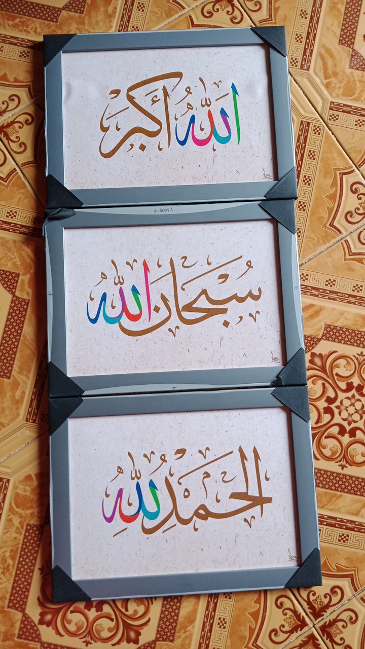 Poster kaligrafi kalimah thayyibah subhanallah alhamdulillah.